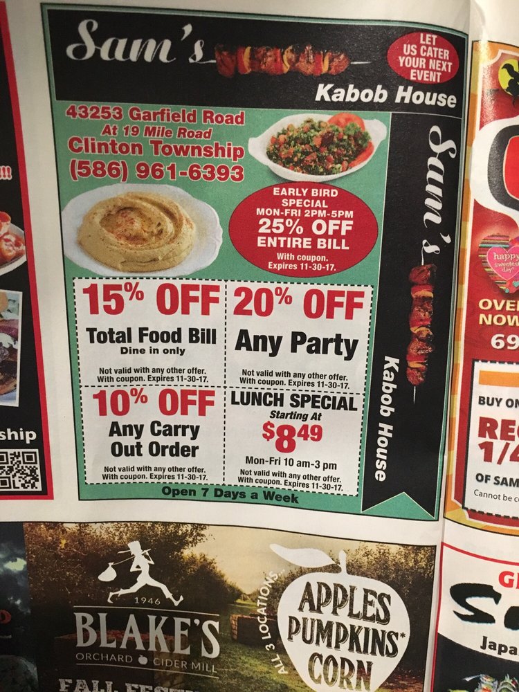 Welcome to Sam’s Kabob House, where flavor meets tradition! Located at 43253 Garfield Rd in Clinton Township, MI, this casual eatery is a haven for Mediterranean food enthusiasts. The menu boasts a rich variety of dishes, from hearty Chicken and Lemon Rice Soup to succulent Shrimp Kebabs and delightful Fish and Chips. Their vegetarian options are plentiful, ensuring a satisfying experience for all guests.